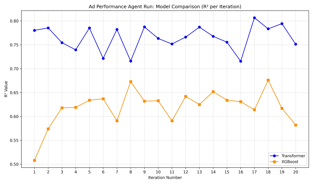 The agent’s optimization works by feeding it the complete history of prior prompts alongside rigorous, quantitative error breakdowns from every previous round. Armed with this granular self-knowledge, the agent identifies precisely which content dimensions it has been under-analyzing — production quality, humor style, credibility signals, visual-brand cohesion — and surgically updates its prompt to capture those features in subsequent iterations. Each round’s prompt is built on the empirical lessons of every round before it, producing a compounding improvement curve where the descriptions become progressively more predictive and, as a direct consequence, more explanatory.